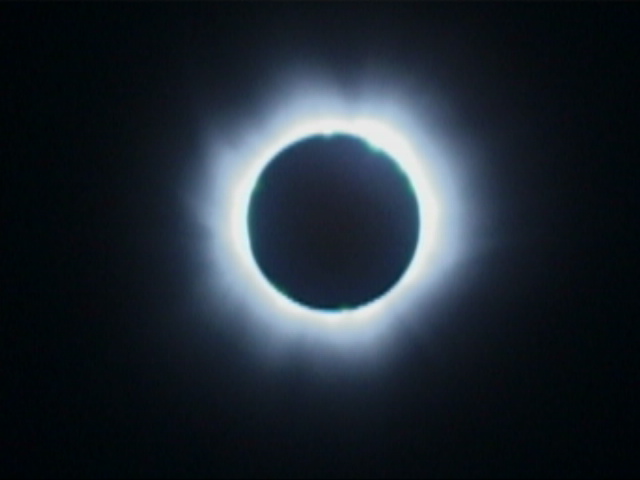 Ablauf in Karlsruhe: Am frühen Morgen war der Himmel erwartungsgemäss bedeckt, aber das konnte sich ja noch ändern. Erste Blicke auf Satellitenbilder und neueste Modellrechnungen waren jedoch entmutigend. Die Kaltfront hatte sich langsamer verlagert als ursprünglich angenommen. Somit waren die Chancen auf rechtzeitige Auflockerungen auf ein Minimum gesunken. Um 9 MESZ zeigten sich nur wenige blaue Lücken zwischen ausgedehnten Stratocumulusfeldern und einzelnen grösseren Cumuli. Der Beginn der Finsternis verlief grösstenteils hinter Wolken. Erst gegen 12 Uhr bekam die zähe Schichtwolkendecke im Westen einige Löcher. Die kleiner werdende Sonnensichel schaute immer häufiger zwischen den dahinziehenden Wolken hervor. Nahezu unmerklich wurde es immer dunkler, ähnlich wie beim Heranziehen eines schweren Gewitters. Die von der Sonne angestrahlten Quellwolken leuchteten nur noch in fahlem Licht. Kurz vor 12:20 MESZ klarte der Himmel rund um die Sonne auf. Unglaubliches Glück! Jetzt beschleunigte sich die Verdunklung mehr und mehr: trotz freier Sicht auf die Sonne erzeugte diese nur noch trübes Licht, allerdings mit gestochen scharfem Schattenwurf. 12:32 wurde der herannahende Kernschatten im Westen als drohende, tiefschwarze Wand sichtbar. Von nun an ging es rasend schnell: Die Sonnensichel verschwand mit einem letzten Aufblitzen hinter dem Mond und die Korona wurde sichtbar. Gleichzeitig wurde es so dunkel, dass einzelne hellere Objekte am Himmel sichtbar wurden (z.B. die Venus). Die auf dem Schlossplatz versammelte Menschenmenge brach in Begeisterungsstürme aus. Vereinzelt wurden Raketen abgeschossen. Am Horizont war die Begrenzung des Schattens durch in gelblichem Licht schimmernde Wolken zu erkennen. Von Westen kam die Helligkeit immer näher und plötzlich blitzte am Mondrand wieder Sonnenlicht hervor. Ebenso schnell wie sie kam wich die Dunkelheit wieder. Kaum war die Sonne wieder als Sichel sichtbar, zogen Wolken heran und verdeckten sie und es fing an zu regnen. Die Sonne wurde den ganzen Tag über nicht mehr gesehen. Georg Müller | ||||||||